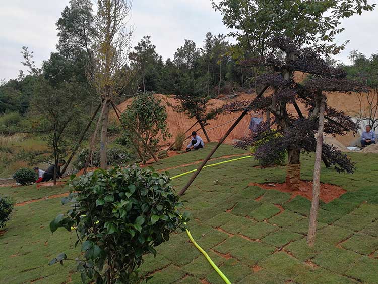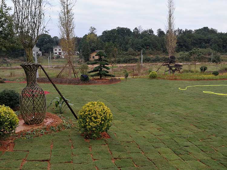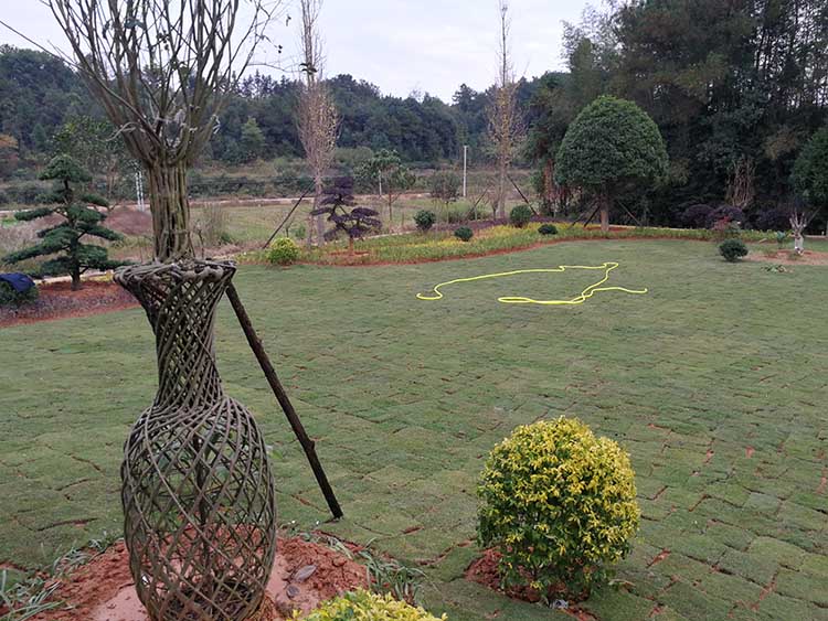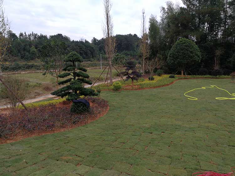 湖南華苑園林為長沙縣開慧鄉(xiāng)喻總的農(nóng)莊設(shè)計了精致園林綠化方案,包括草坪、造型樹、喬木、灌木等多種植物。