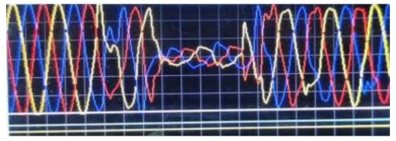 企業內系統支路短路,母線殘壓一般低于額定電壓的 20%,大約在 0.1 秒左右恢復,這是微機保護判斷加上開關開斷的時間,母線電壓發生的暫降現象,企業供電系統稱之為“晃電”,晃電實錄的電壓波形見圖一。